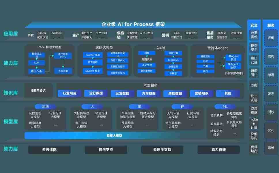 9001cc 以诚为本问学智车解决方案是一套基于AI技术的汽车行业智能化系统,,覆盖从底层算力到顶层AI应用的全栈方案。。方案由算力层、、、模型层和应用层组成:算力层,,,方案支持多种一体机配置,,具备云端灵活部署、、、多云适配以及动态优化计算资源的能力;模型层,,9001cc 以诚为本问学平台版提供了企业级AI应用一站式构建与管理平台,,,,支持基于后训练强化技术的汽车企业专属模型的训练、、评测和运营;应用层,,,9001cc 以诚为本问学DeepSeek版提供包括超级员工、、智能招采、、、智能营销、、、智能客服、、AI for BI等一系列解决方案,,,,可助力汽车行业实现数字化转型,,让管理更智能、、、响应更敏捷。。。